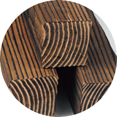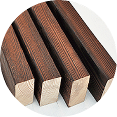 用二次烘干后的充分渗透的板材 ,先指接,再用抗裂的户外的胶水 胶合,沸水煮4小时后,再用50℃ 烘干18小时,最后用-10℃冷冻18 小时,单个胶合柱
